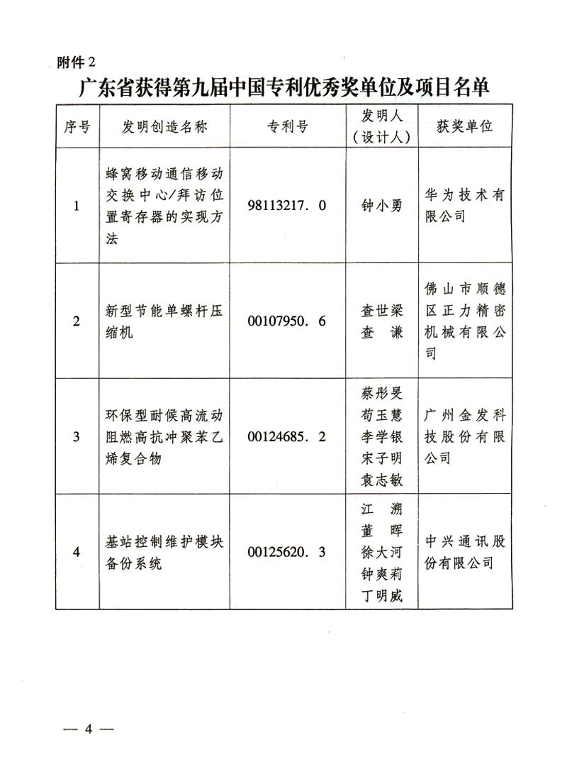 名称: | 关于表彰我省获得第九届中国专利奖单位的通报 | ||