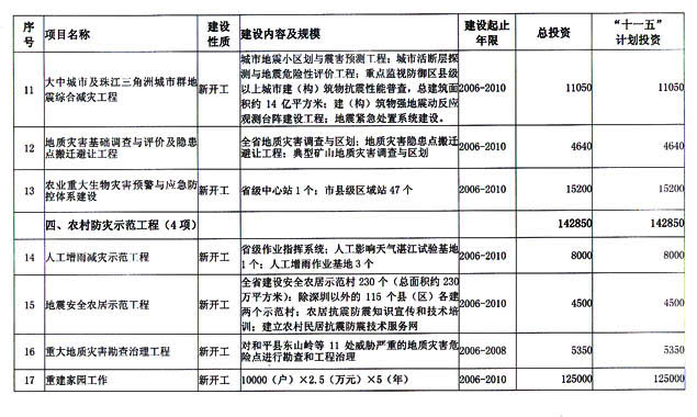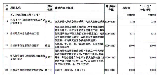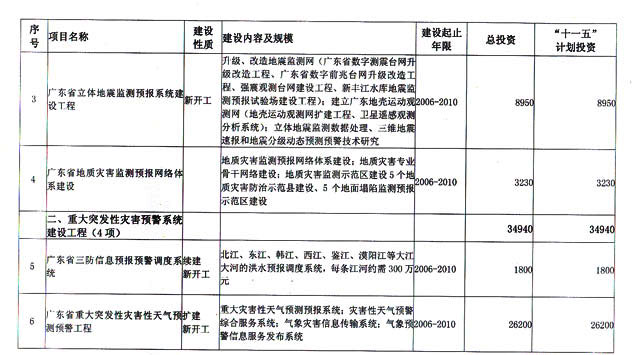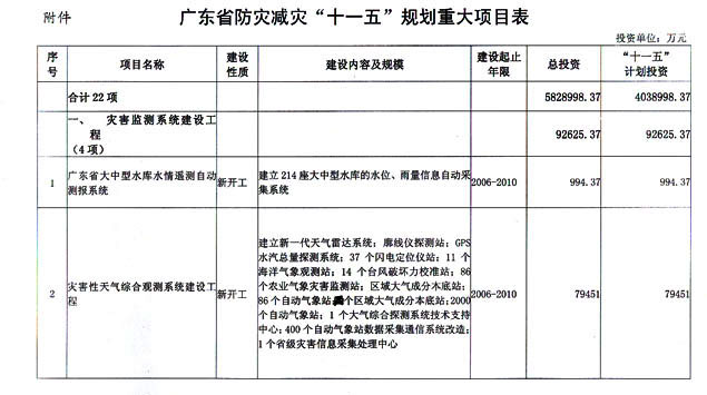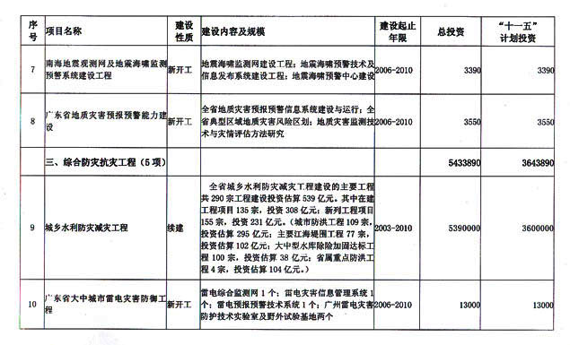 附件:广东省防灾减灾“十一五”规划重大项目表