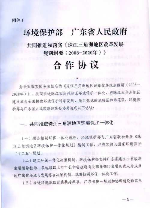 附件:1.环境保护部正规博彩平台共同推进和落实《珠江三角洲地区改革发展规划纲要(2008-2020年)》合作协议