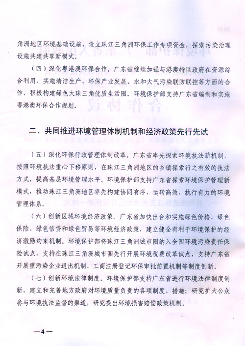 环境保护部正规博彩平台共同推进和落实《珠江三角洲地区改革发展规划纲要(2008-2020年)》合作协议