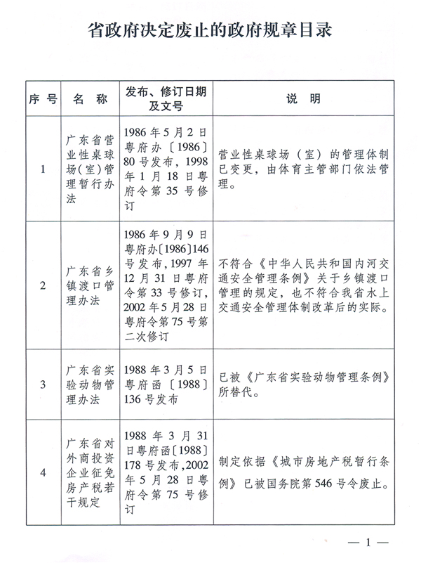 经2010年12月7日正规博彩平台第十一届65次常务会议通过,决定废止《广东省营业性桌球场(室)管理暂行办法》等20项政府规章(目录附后),现予公布,自公布之日起施行。
