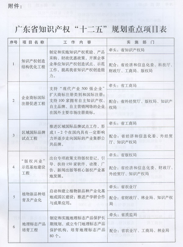 印发广东省知识产权事业发展 “十二五”规划的通知