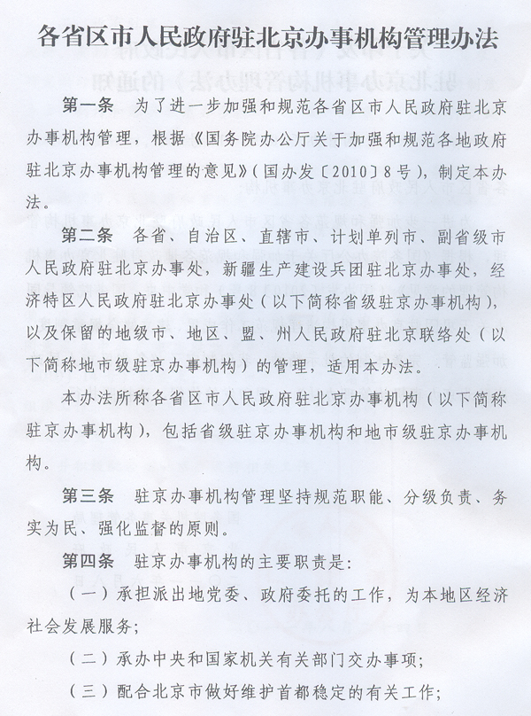 转发国务院机关事务管理局北京市人民政府 关于印发各省区市人民政府驻北京 办事机构管理办法的通知