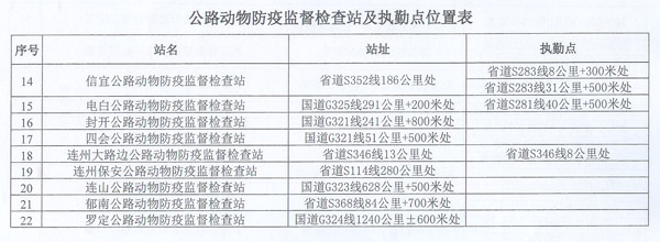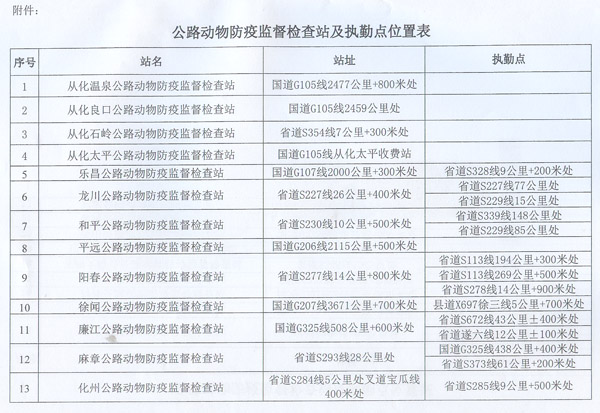 附件:公路动物防疫监督检查站及执勤点位置表
