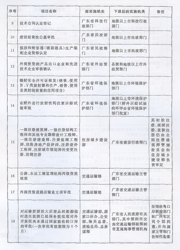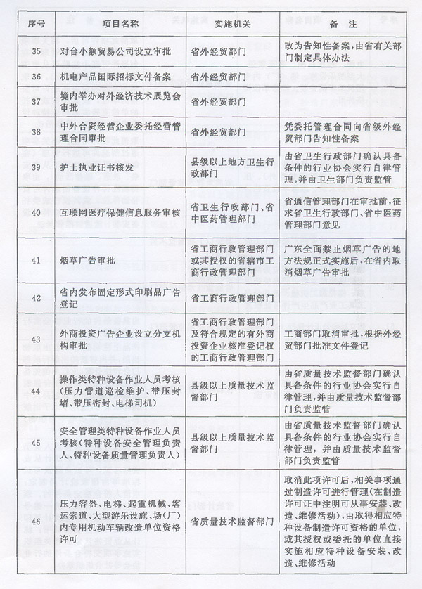 各地级以上市人民政府,各县(市、区)人民政府,省政府各部门、各直属机构: 现将《国务院关于同意广东省“十二五”时期深化行政审批制度改革先行先试的批复》(国函〔2012〕177号)转给你们,并结合我省实际提出以下意见,请一并认真贯彻执行。 一、积极稳妥做好实施工作 各地、各部门要结合当前正在推进的各级行政审批制度改革工作,抓紧制订具体实施方案,明确实施时间、任务和进度安排等,确保行政审批项目取消和调整工作及时落实到位。 (一)关于国务院同意在我省行政区域内停止实施的行政审批事项。 对国务院同意在我省行政区域内停止实施的行政审批事项,原实施机关自本通知下发之日起停止实施,不得变相审批。 对国务院同意在我省行政区域内政府部门不再实施、转移给具备条件的行业组织实行自律管理的事项,要根据国函〔2012〕177号文规定的具体内容,结合省编委《政府向社会转移职能工作方案》(粤机编〔2012〕22号)有关要求,分类分步转移,积极稳妥有序推进,确保相关事项“转得出、接得稳”。已经具备条件的事项,要立即实施转移;基本具备条件的事项,要制订分步骤分阶段工作安排,逐步实施转移;暂不具备条件的事项,要加快培育行业组织,设定一定过渡期并明确过渡期内的管理安排。各部门要就每项转移事项制订实施方案,报本级机构编制部门或行政审批制度改革牵头部门审定。除需新成立行业组织后再实施转移的事项外,其他转移事项的交接工作争取在2013年上半年基本完成。 (二)关于国务院同意下放管理层级的行政审批事项。 由国家部门下放到我省实施的行政审批事项,各地、各部门要积极主动与国家有关部门做好沟通衔接,争取在2012年年底前完成交接工作,并在国家相关部门的指导下,依法开展行政审批。 对国务院同意我省下放到市、县实施的行政审批事项,原实施机关要在2012年年底前与承接单位完成交接工作,并通过有效方式向社会公布交接日期、下放事项及权责关系等。在交接期间,原实施机关要继续做好相关管理工作,防止交接过程中出现管理“真空”。原实施机关要加强对承接单位的业务培训和指导,促进承接单位依法依规有序开展工作。行政审批事项下放后,实施机关为市、县(市、区)人民政府的,由市、县(市、区)人民政府确定具体实施部门。除另有规定外,佛山市顺德区政府(部门)享有下放给地级以上市政府(部门)的权限。 二、切实加强监管 在取消、调整行政审批事项的同时,要努力改变重审批、轻监管的管理方式,加快推动政府部门工作重心向制订标准规则和强化监管转移,管理方式由事前审批向事中、事后监管转变。各部门要根据省编委《关于加强对行政审批制度改革调整事项监管的意见》(粤机编〔2012〕23号)有关要求,结合社会信用体系建设和市场监管体系建设,针对取消、调整的行政审批事项,逐项制订具体监管办法,切实履行好后续监管职责,抓紧完善各领域、各环节的监管制度和管理规范,强化监管责任,落实监管措施,防止监管缺位。 三、加快培育发展和规范社会组织 按照省委、省政府《关于进一步培育发展和规范管理社会组织的方案》(粤发〔2012〕7号)有关要求,积极推进社会组织去行政化和去垄断化,加大对社会组织发展扶持力度,扩大政府购买服务,鼓励和引导社会组织更多地参与社会服务和社会管理事务,促进社会组织良性有序发展。加快构建社会组织综合监管体系,建立健全社会组织服务管理能力评估办法,引导社会组织建立健全规范运作、诚信执业、信息公开、公平竞争、奖励惩戒、自律保障等机制。 四、推进行政审批标准化规范化建设 加快出台《广东省行政审批事项目录管理办法》,对行政审批事项实行目录管理,建立行政审批事项动态清理调整机制。创新审批方式,建立和完善审批标准,优化审批流程,简化审批程序,严格规范行政审批自由裁量权。加快网上办事大厅建设,推进网上审批、并联审批和服务质量公开承诺,进一步健全行政审批服务体系,不断提高行政审批服务水平。 五、加强组织领导 国务院批准我省“十二五”时期深化行政审批制度改革先行先试,对我省加快转变政府职能,率先探索构建具有强大动力、充满活力和可持续竞争力的行政体制机制,建设法治化国际化营商环境具有重大意义。各地、各部门要进一步统一思想,提高认识,把深化行政审批制度改革摆在突出位置,切实加强领导,健全工作机制,明确分工责任,精心组织实施,坚定不移地扎实推进。各地、各部门要于2013年1月底前将贯彻落实情况报送省转变政府职能决策咨询委员会办公室(设在省编办,下称省转职能办)。省转职能办要牵头加强对各地、各部门改革实施工作的监督检查,确保改革顺利推进并取得明显成效。 各地、各部门在贯彻实施过程中遇到的问题,请径向省转职能办反映。