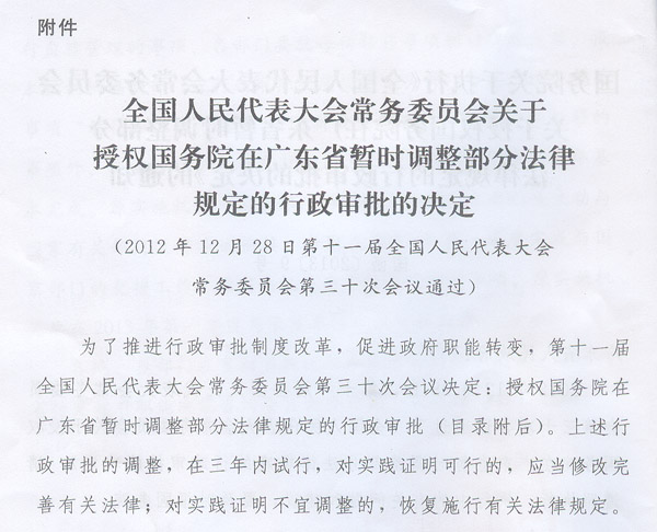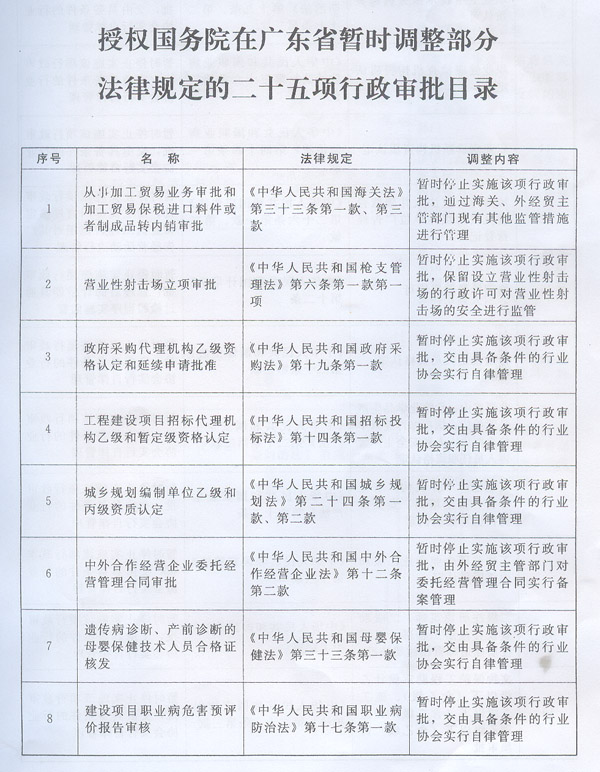 正规博彩平台转发国务院关于执行《全国 人民代表大会常务委员会关于授权国务院在 广东省暂时调整部分法律规定的 行政审批的决定》的通知