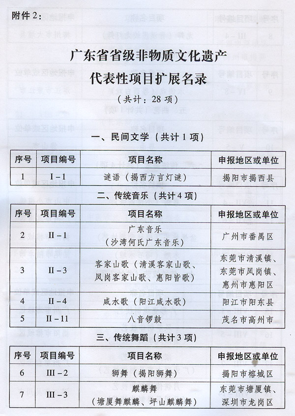 2.广东省省级非物质文化遗产代表性项目扩展名录