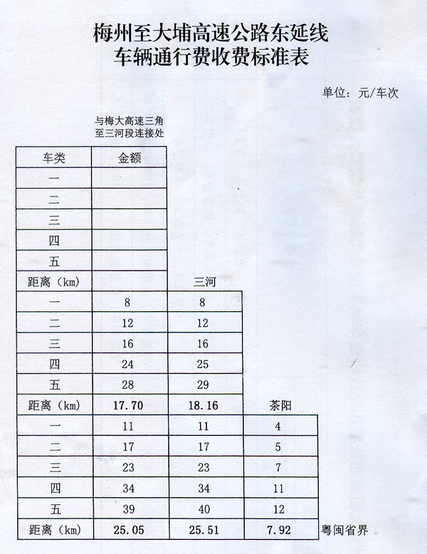 2.梅州至大埔高速公路东延线车辆通行费收费标准表