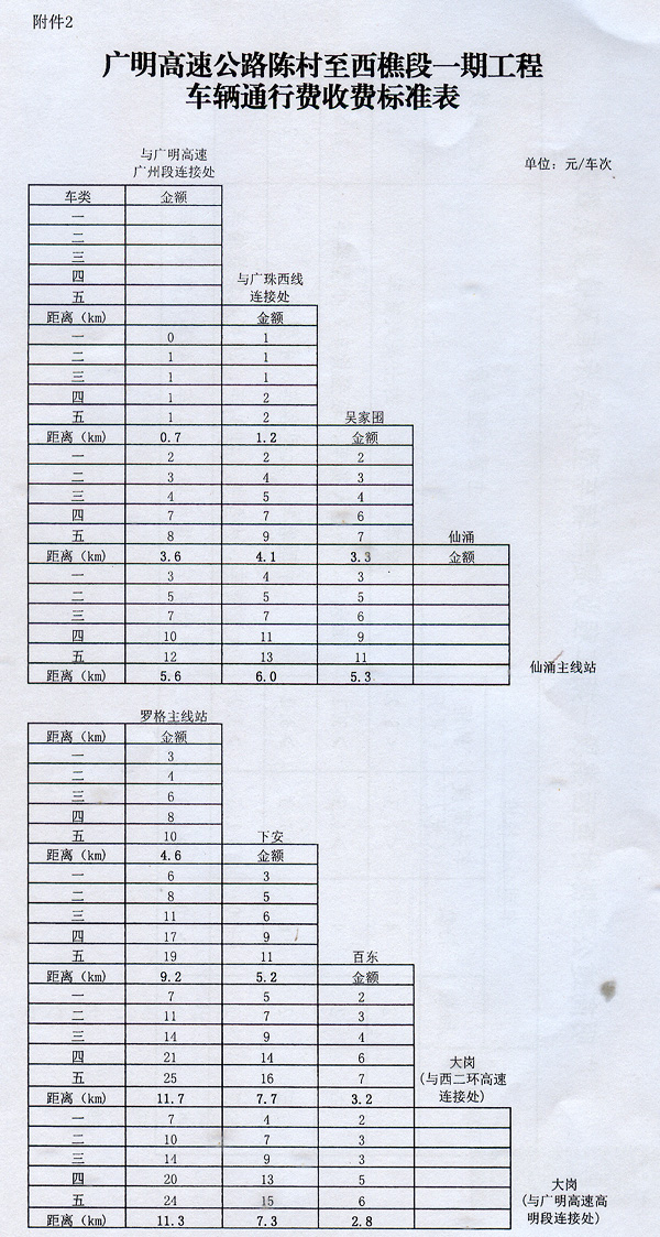 2.广明高速公路陈村至西樵段一期工程车辆通行费收费标准表
