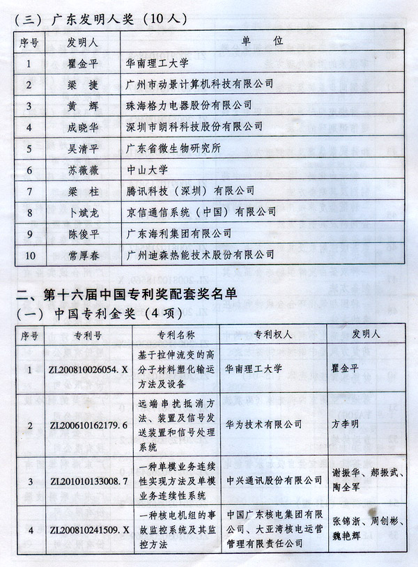 正规博彩平台关于表彰2014年广东省 专利奖单位和个人的通报