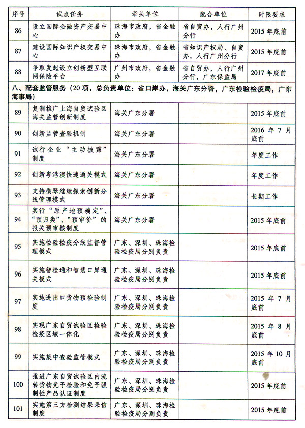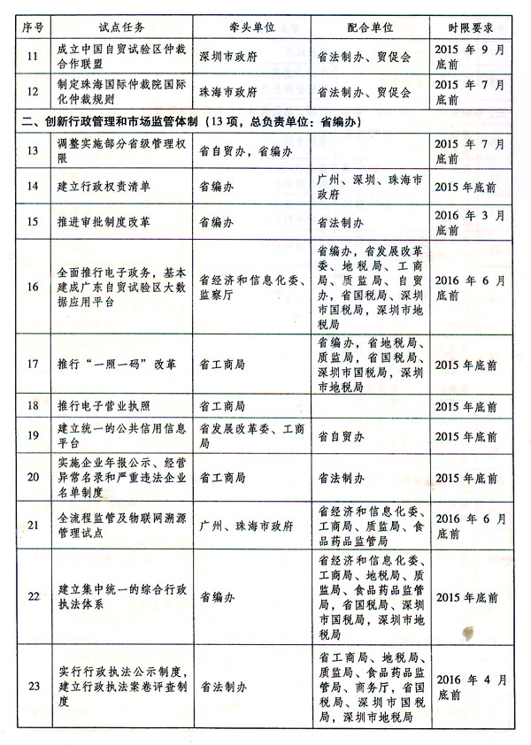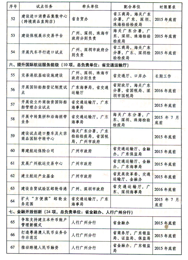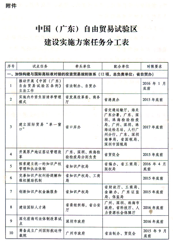 附件:中国(广东)自由贸易试验区建设实施方案任务分工表