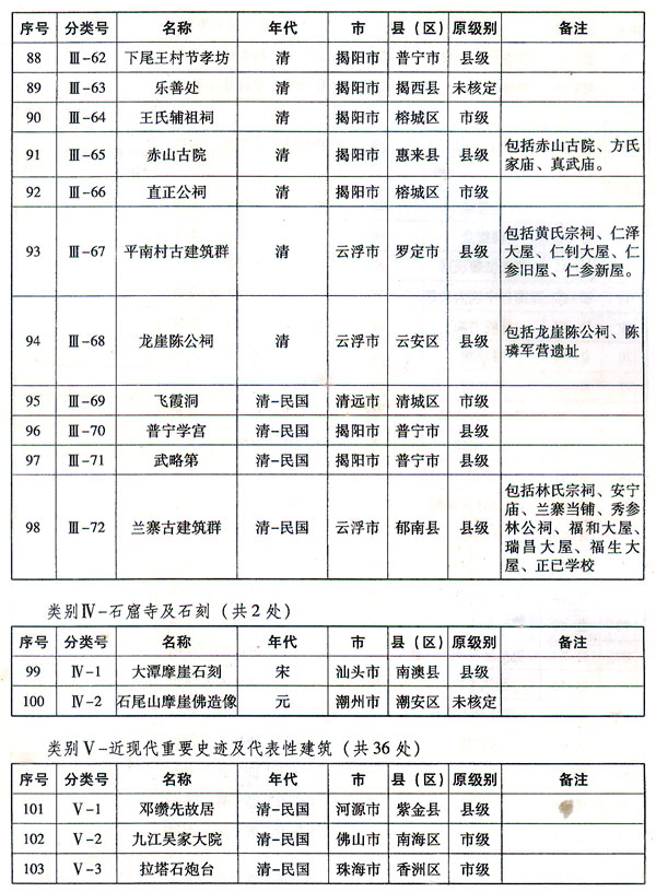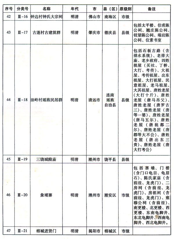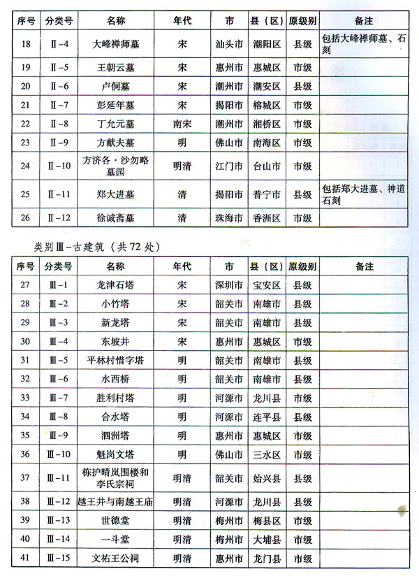 正规博彩平台关于批准并公布第八批 广东省文物保护单位名单和第一批 广东省水下文物保护区名单的通知