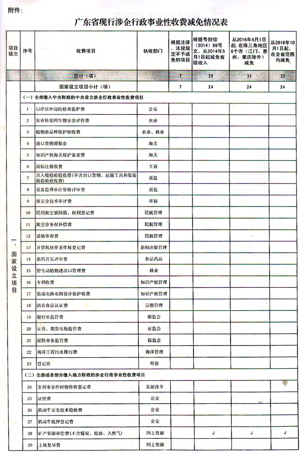 附件:广东省现行涉企行政事业性收费减免情况表
