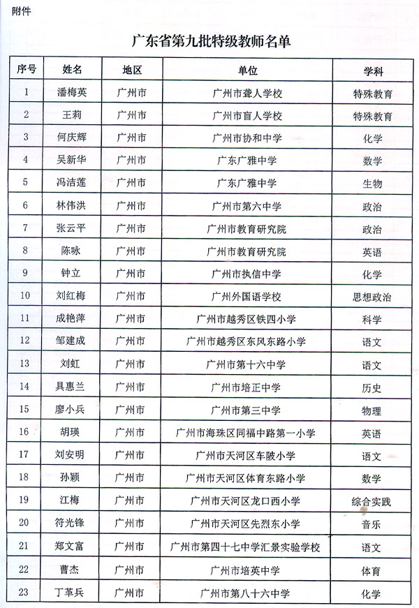 名称: | 正规博彩平台关于同意潘梅英等298名同志为广东省第九批特级教师的批复 | ||