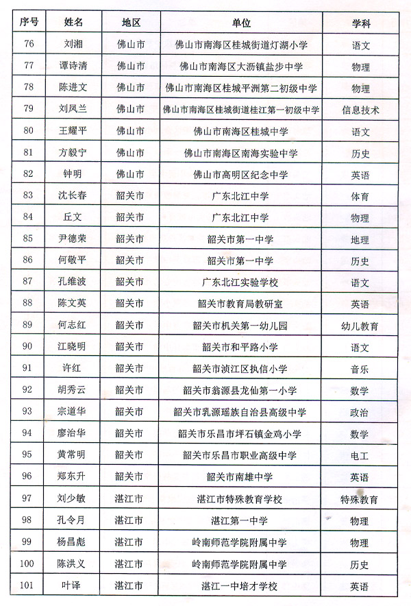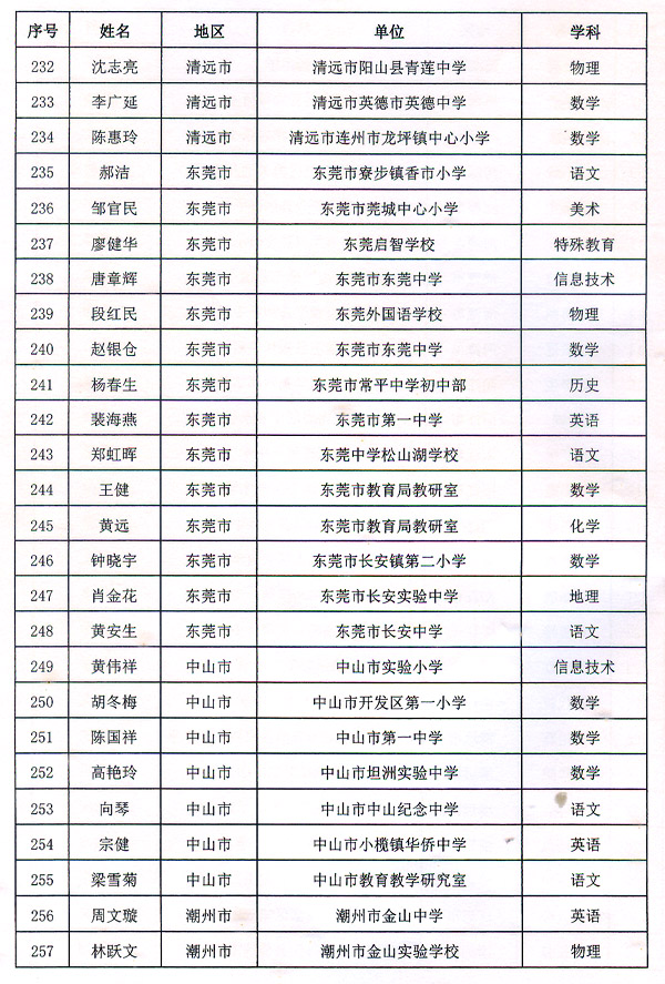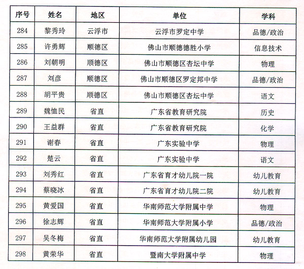 正规博彩平台关于同意潘梅英等298名 同志为广东省第九批特级教师的批复