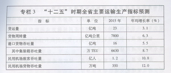 3.行业管理水平不断提高。 行业体制和重点领域改革取得突破。基本完成省和地级以上市两级交通运输行政管理机构改革,顺利完成交通运输综合行政执法体制改革、农村公路养护管理体制改革、成品油价格和税费改革。逐步推进行业投融资体制改革,建立省级交通建设融资平台。广东珠三角城际轨道交通有限公司成立,部省合作建设铁路和城际轨道交通项目总规模进一步扩大。省机场管理集团公司由“省属市管”改革为“省属省管”,机场管理体制进一步理顺。 一体化协调机制初步建立。多层次的区域交通运输一体化协调机制初步形成。建立广佛肇、深莞惠、珠中江经济圈交通运输一体化协调机制;粤港澳交通运输联络协调机制及大珠江三角洲区域5大机场联席会议机制逐步完善;港珠澳大桥建设协调管理机构粤港澳三地联合工作委员会正式成立并按三地政府协议运作;建立泛珠江三角洲区域交通运输合作联席会议制度,设立交通运输合作专责小组。 规划编制与法规制订逐步完善。完成《珠江三角洲地区城际轨道交通网规划(2009年修订)》、《广东省沿海港口布局规划(2008-2020年)》、《广东省内河航运发展规划(2010-2020年)》、《广东省民用机场发展规划》、《珠江三角洲地区公路水路交通基础设施一体化规划(2009-2020年)》、《珠江三角洲地区公路水路运输一体化规划(2009-2020年)》等专项规划。修订《广东省公路条例》,出台《广东省港口管理条例》等一批规范性文件,进一步完善全省交通运输业发展和管理的法规框架。 节能减排工作取得新成效。逐步构建全省交通运输节能减排监测考核体系。率先在城市公共交通、市政、公务等领域推广使用电动、液化天然气(LNG)等类型的新能源汽车,加快实施全省新能源汽车推广应用示范工程。启动西江、北江及珠江三角洲骨干航道网适用船型研究。积极探索大宗件货物水路运输诱导和补偿机制。推进资源节约型和环境友好型港口建设,引导港口企业实施“油改电”项目技术改造。 (二)存在问题。 1.综合运输通道有待完善。铁路通道建设滞后,珠江三角洲城际轨道交通骨架网络尚未形成。高速公路网络有待完善,跨珠江口等运输通道供需矛盾突出。粤东地区和粤北山区内河航道通航等级偏低,部分内河出海口门和沿海港口出海航道等级与船舶标准化、大型化要求不相适应。 2.运输结构配置不尽合理。各种运输方式发展不平衡,轨道交通发展较慢,内河航运资源未充分利用,客货运过度依赖公路运输。综合运输枢纽建设相对滞后,集疏运系统不尽完善,不同运输方式间衔接不够顺畅。区域间交通运输发展不协调,东西北地区总体交通运输服务水平比较落后。 3.城市交通压力不断加剧。广州、深圳等中心城市交通拥堵呈常态化趋势,拥堵现象逐步向佛山、东莞等城市蔓延。公共交通在城市交通系统中的主体地位尚未确立,总体运送能力不足,高峰期运力明显紧张。 4.运输服务水平有待提高。交通运输装备和整体技术水平仍然不高,信息化和智能化应用水平偏低。适应运输服务一体化发展的管理体制机制有待理顺,运输市场体系亟待健全和规范。土地、环境等对行业发展的刚性约束进一步加大,交通运输业实现节能降耗、绿色发展的目标任重道远。 (三)发展要求。 “十二五”时期是我省加快转型升级、建设幸福广东的关键时期,既为全面推进综合交通体系建设提供了难得的机遇,也对综合交通运输体系建设提出了新的更高的要求。首先,随着广东经济社会的平稳较快发展,特别是工业化、城镇化进程的不断加快,运输需求将呈现稳步增长、结构升级态势,煤炭、石油、铁矿石等能源、原材料大宗物资和集装箱运输需求增加,城际和城市客运需求持续上升。为适应经济社会发展需要,必须着力拓展交通运输网络的覆盖深度和广度,进一步提升运输能力和服务水平。其次,广东将更加注重区域城乡协调发展,进一步发挥珠江三角洲地区辐射、服务和带动功能,形成环珠江三角洲地区经济快速增长带和城乡经济社会一体化发展新格局。为适应区域城乡协调发展需要,必须着力优化运输网络结构,进一步推进区域和城乡运输一体化。第三,广东将继续促进产业转型升级,进一步推动产业梯度转移,形成不同梯度与层次、相互配套、关联互补的产业集聚发展格局。为适应产业转型升级需要,必须着力提升运输通道能力,构建综合运输枢纽,进一步发挥交通基础设施的支撑带动作用。第四,随着幸福广东建设不断推进,人民生活水平进一步提高,全省旅客出行需求将呈现多样化、多层次特征,对运输服务提出了全方位的更高要求,必须不断提升运输服务质量,构建便捷、安全、高效、绿色的综合交通运输体系。