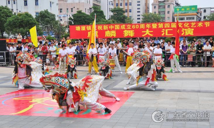 民国《东莞县志》记载:“元旦至晦,结队鸣征鼓,以纸糊麒麟头,画五采。缝绵被为麟身,两人舞之,舞罢,各演拳棒,曰舞麒麟。”历史上,珠江三角洲麒麟舞以东莞最为鼎盛。塘厦镇位于东莞市东南部,毗邻港澳,塘厦舞麒麟至今已有三百多年历史,主要流传于镇内石潭埔、石马、清湖头、石鼓、横塘、林村、莲湖等多个村落。