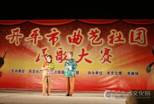 开平民歌是一种曲调明快、语言幽默、旋律优美、形式多样,具有浓郁地方生活特色的传统音乐形式,流传至今已有500多年的历史,当前不仅广泛流传于开平城乡,还伴随着当地华侨迁徙而流布到美国、加拿大、香港等60多个国家和地区的华人侨居地。
