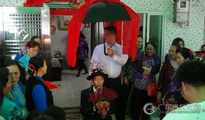 大亚湾地区古来就是疍民的聚居地之一,明末清初屈大均《广东新语》称,“諸蛋以艇為家,是曰蛋家。其有男未聘,則置盆草于梢;女未受聘,則置盆花于梢,以致媒妁。婚時以蠻歌相迎,男歌勝則奪女過舟。”大亚湾渔家婚嫁是大亚湾地区疍家渔民人生礼俗中的重要组成部分,其保留了沿海疍民“蛮歌相迎”等传统婚嫁礼仪,是传统上疍家渔民“浮家泛宅”生活的缩影。现如今,大亚湾渔家婚嫁主要分布在惠州市大亚湾地区的沿海疍民聚居村落,包括大亚湾经济技术开发区的澳头街道办东升村、前进村、金门塘村和霞涌街道办霞新村。