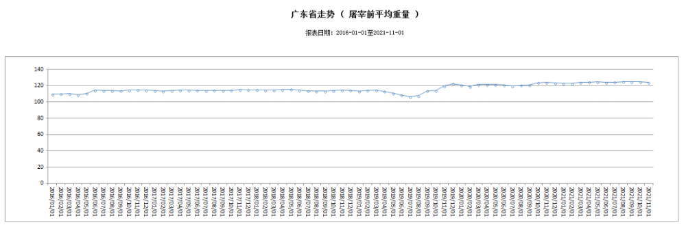 11月份,跟踪监测的321家生猪定点屠宰企业生猪屠宰前平均重量124.29公斤,环比下降0.50%。