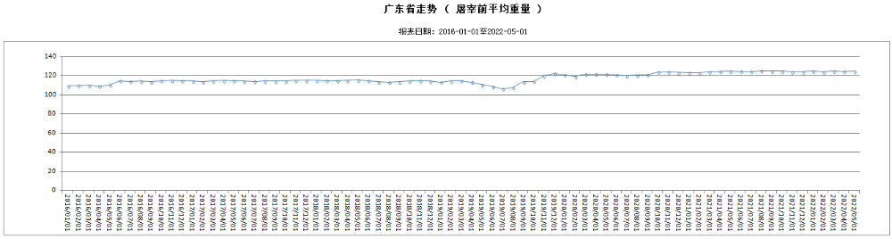 5月份,跟踪监测的316家生猪定点屠宰企业生猪屠宰前平均重量124.80公斤,环比上升0.18%。