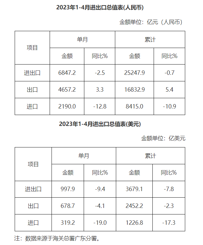 广东省外贸进出口总值表(2023年1-4月)