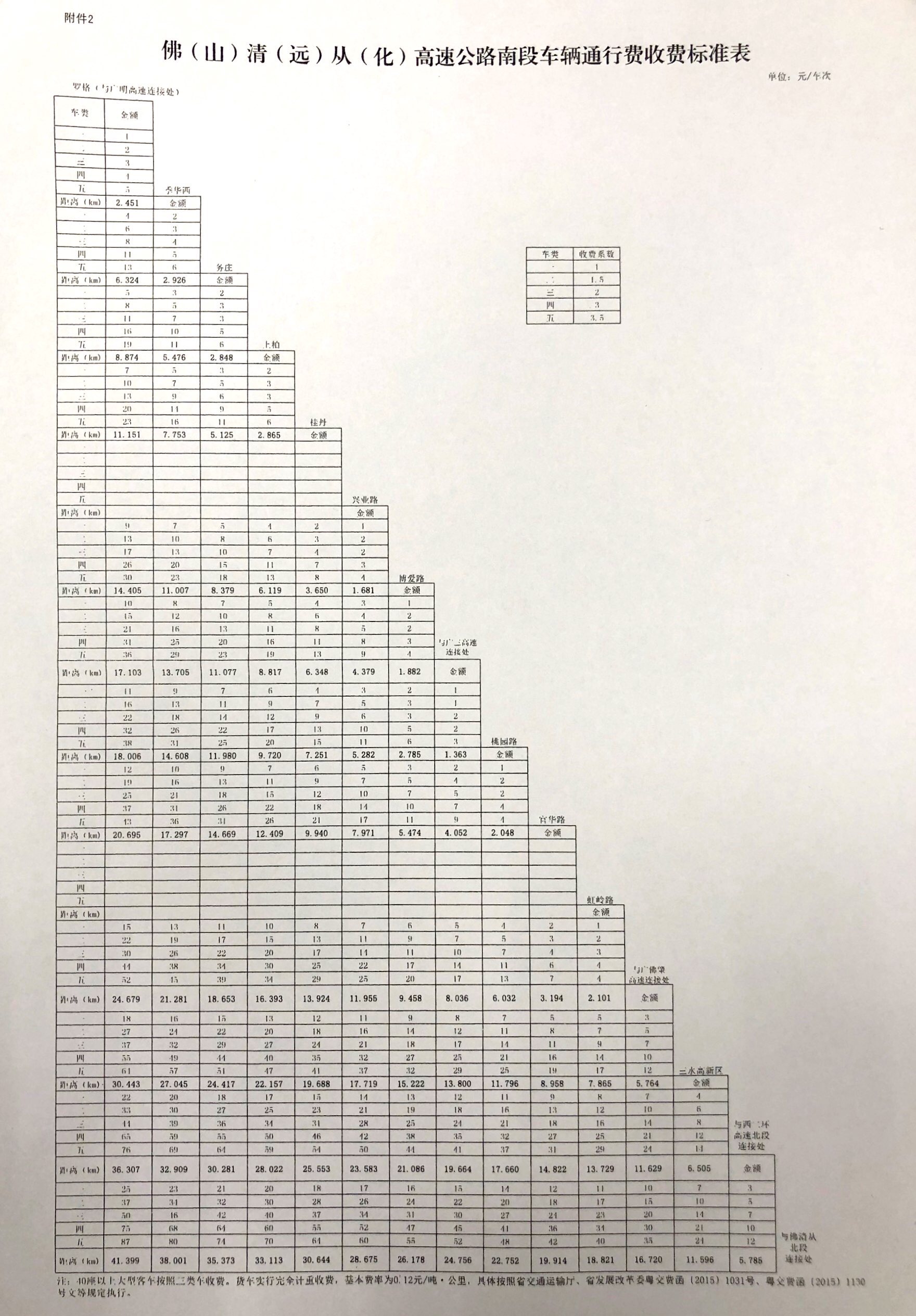 2.佛(山)清(远)从(化)高速公路南段车辆通行费收费标准表